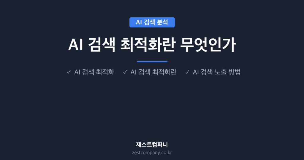 AI 검색 최적화란 무엇인가 📋 3줄 요약 • AI 검색 최적화는 ChatGPT·Gemini·Perplexity 등 생성형 AI의 답변에서 자사 콘텐츠가 인용되도록 만드는