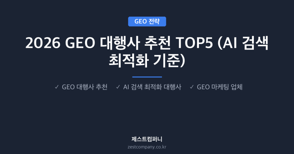 2026 GEO 대행사 추천 TOP5 (AI 검색 최적화 기준) 📋 3줄 요약 • GEO 대행사는 ChatGPT·Gemini 등 AI 검색에서 브랜드가
