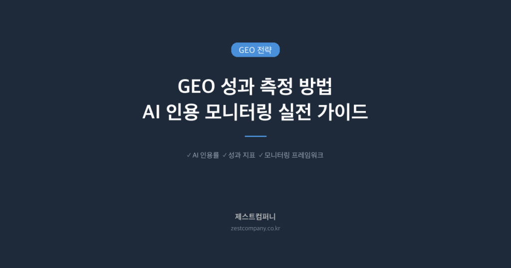 📋 3줄 요약 • GEO 성과는 AI 검색엔진(ChatGPT·Gemini·Perplexity)에서 브랜드가 인용되는 빈도와 정확도로 측정합니다. • 기존 SEO 지표(순위·트래픽)와 달리, GEO 지표는