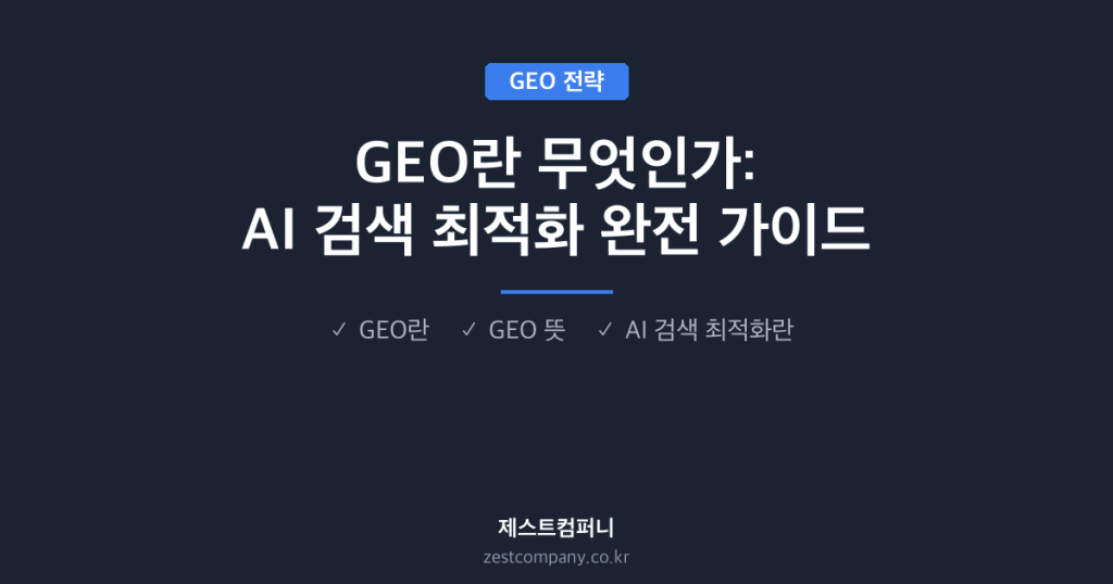 GEO란 무엇인가: AI 검색 최적화 완전 가이드 📋 3줄 요약 • GEO는 AI 검색엔진(ChatGPT, Gemini, Perplexity 등)이 콘텐츠를 인용 출처로