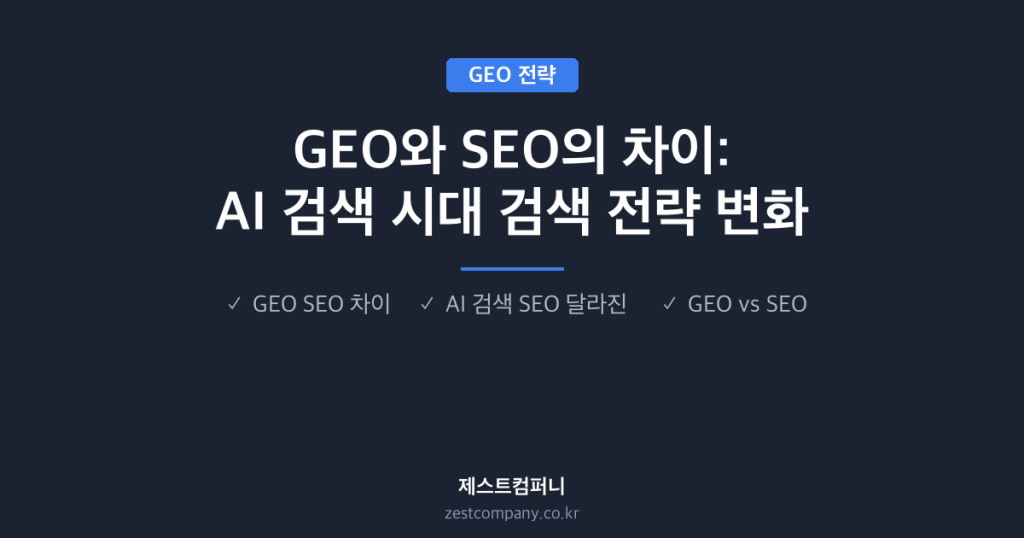 GEO와 SEO의 차이: AI 검색 시대 검색 전략 변화 📋 3줄 요약 • SEO는 검색 결과 페이지 순위를 높이는 전략이고,