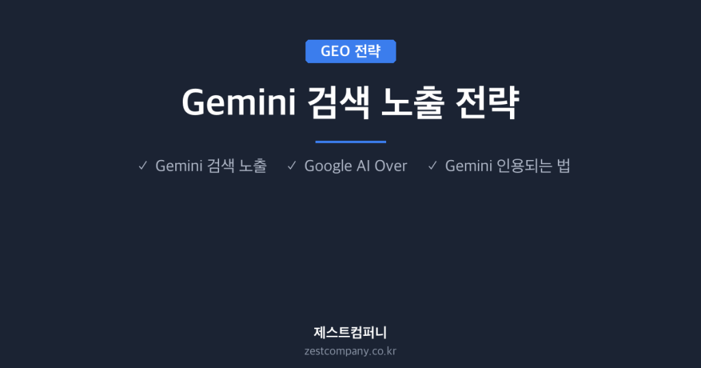 Gemini 검색 노출 전략 📋 3줄 요약 • Gemini 검색은 구글 검색 인덱스를 기반으로 Gemini가 정보를 요약·인용하며, AI Overview 패널로 […]